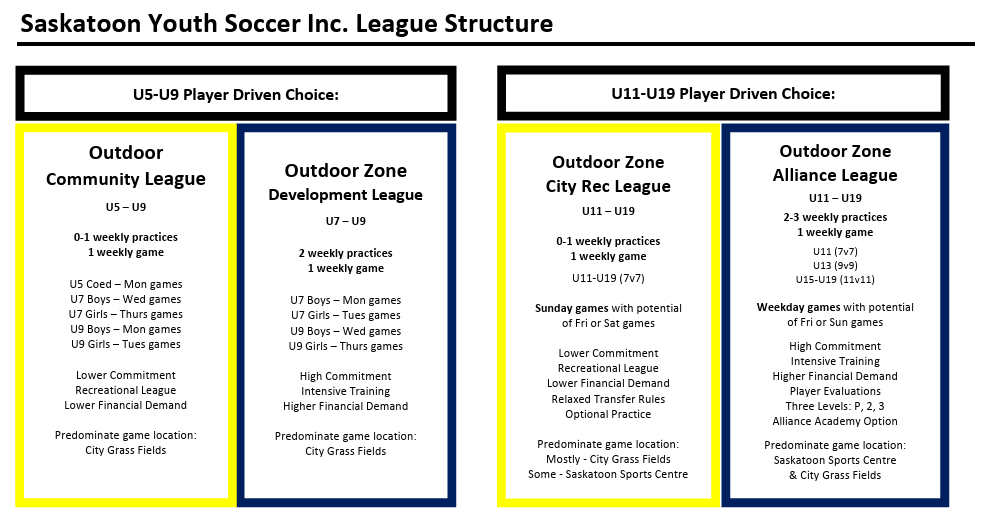 Saskatoon Youth Soccer has moved to the two-league format to provide a wider range of options for youth soccer to meet the different commitments desired by different players.
